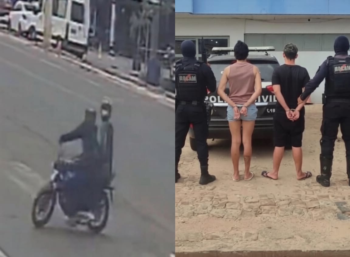 Dois homens identificados pelas iniciais W.D. de O. e J.L. de M.O. foram presos na tarde desta quinta-feira (12) após praticarem um roubo a um estabelecimento na Av. Senador Helvídio Nunes (BR-316), nas imediações da Clínica de Urgência em Picos. A ação criminosa ocorreu por volta das 12h30 e, segundo a Polícia Militar, a dupla utilizou uma motocicleta e uma arma de fogo para subtrair aproximadamente R$ 2 mil do local.
