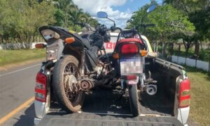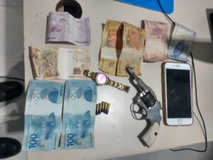 Durante a abordagem, os policiais apreenderam um revólver calibre .22 com cinco munições, uma motocicleta Honda Pop 110 de cor branca — que havia sido roubada —, uma motocicleta Honda Fan de cor preta e sem placa, além de um celular, um relógio, R$ 307 em dinheiro, mochilas e outros pertences da vítima.