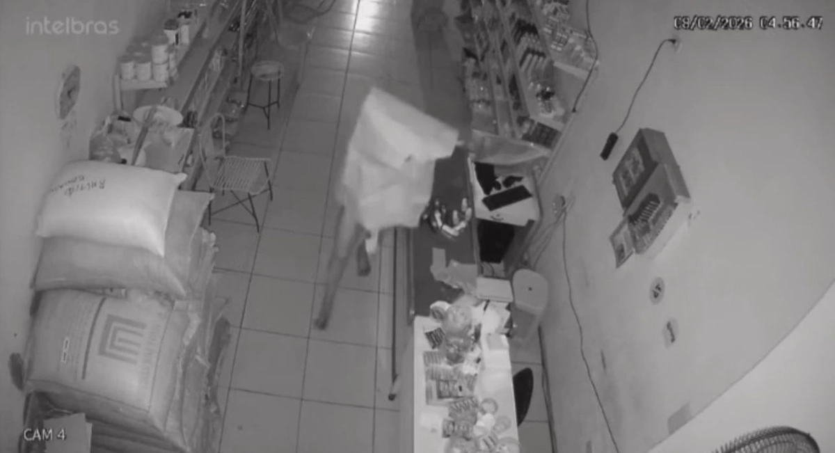 O vídeo mostra o homem acessando o local durante a madrugada e indo diretamente ao caixa, onde revira o espaço à procura de dinheiro ou objetos de valor. Em seguida, ele recolhe alguns produtos, coloca-os em uma sacola e deixa o estabelecimento.