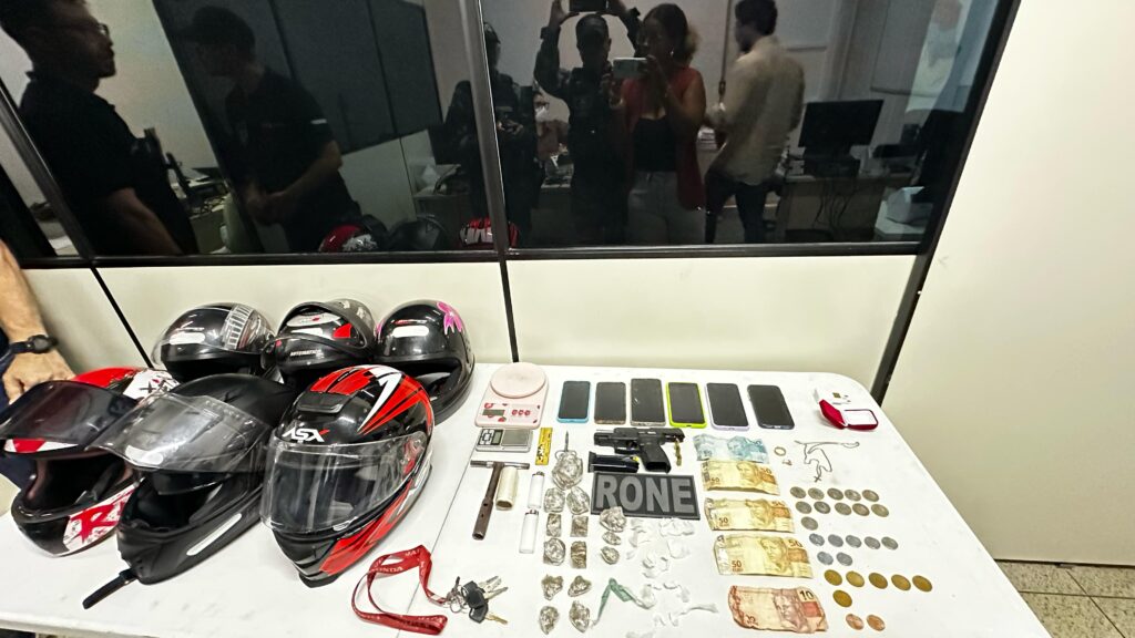 Durante a operação, as forças de segurança apreenderam uma pistola, munições, seis celulares, uma motocicleta roubada, drogas, balanças de precisão, jóias, capacetes, dinheiro em espécie e roupas utilizadas na ação criminosa.