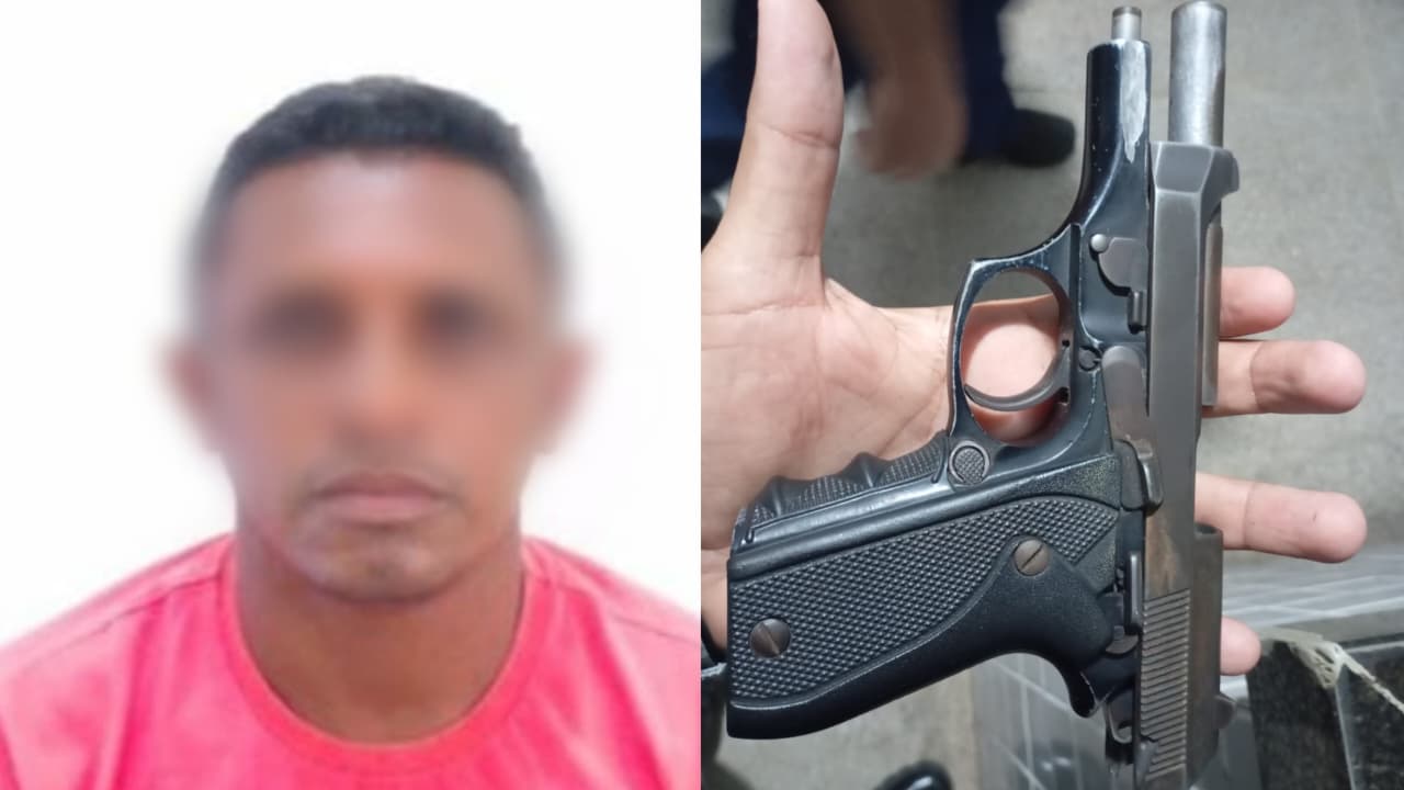 O homem foi abordado em uma sala do estabelecimento, onde os policiais encontraram uma pistola calibre .380 com 16 munições e numeração raspada. Após os procedimentos de revista e identificação, o suspeito de iniciais — D. J. M. da S., de 43 anos — foi conduzido à Delegacia de Polícia Civil para os procedimentos legais.