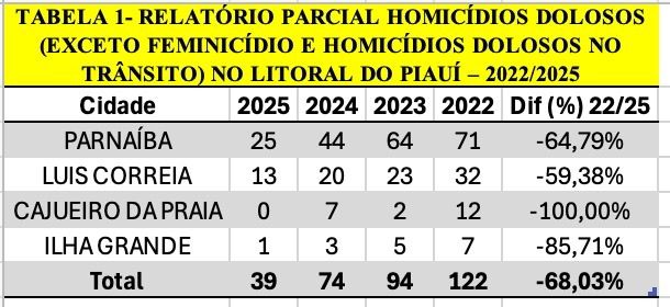 janeiro 6, 2026A Secretaria da Segurança Pública do Piauí (SSP-PI) divulgou, nesta sexta-feira (03), novos indicadores que apontam uma redução de 68,03% nos homicídios dolosos...